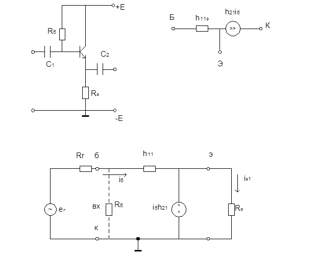 Uвх = iбh11 + iэRэ = iбh11 + Iб(h21 + 1)Rэ