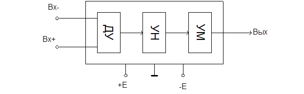 ОУ – это усилитель постоянного тока с непосредственными связями между каскадами, основу которого составляет ДУ.