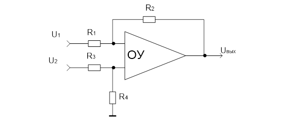 Uвых = (R2/R1)(U2 – U1) – разностный