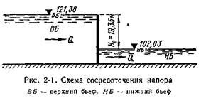 На ГЭС гидравлическая энергия преобразуется в электрическую энергию. Для ГЭС необходимы расход Q, м3/с и сосредоточенный перепад уровней Н0 (рис. 2-1), т. е. напор, м.