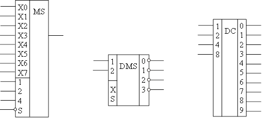 Мультиплексор (MS) (другие названия – селектор данных, коммутатор) – это комбинационное логическое устройство, предназначенное для управляемой передачи данных, которые поступают по нескольким входам, на один выход. Выбор того или иного входа осуществляется в соответствии с поступающим кодом адреса. Согласно определению, мультиплексор имеет две группы входов (информационные и адресные) и один выход. Код, подаваемый на адресные входы, определяет, какой из информационных входов в данный момент подключен к выходному выводу. Если число адресных входов равно n, то число информационных входов может быть равно 2n .