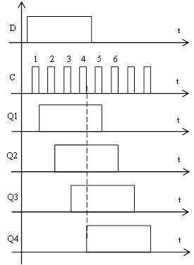 =0; вторым тактовым импульсом в это состояние переключится второй триггер и т.д. (рис. 150). Очевидно, что четвертый тактовый импульс сдвинет уровень логической единицы в четвертый триггер, и на выходах разрядов регистра появится кодовый набор 1111.