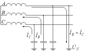 Однофазное замыкание на землю в сети с изолированной нейтралью