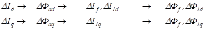 вызовет ответную реакцию ротора, которая образуется из приращений потоков обмотки возбуждения и продольной (демпферной).