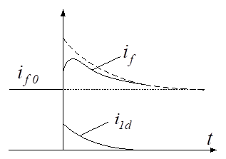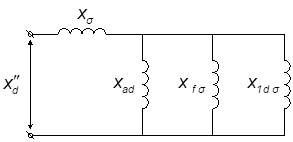 При наличии демпферных обмоток, компенсация реакции статора продольной оси машины, обеспечивается токами не только в обмотке возбуждения, но и в демпферных обмотках. Внезапное приращение