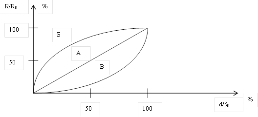 Функциональная характеристика определяет зависимость сопротивления переменного резистора от положения (угла наклона) подвижного контакта.
