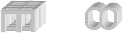 Прессованные сердечники – дешевле пластинчатых и ленточных, но в то же время они имеют свои недостатки: значительную зависимость индукции от температуры, пропитки и заливки обмоток, подверженность механическим воздействиям. Прессованные сердечники применяются на относительно высоких частотах (более 10 кГц).