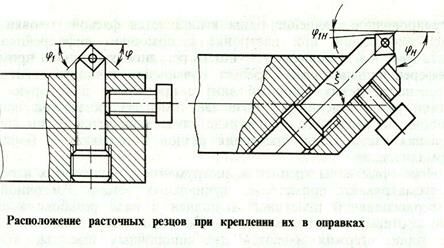 При растачивании глубоких отверстий для повышения жесткости резцы крепятся в специальных оправках. Резцы имеют квадратное сечение. Крепятся в оправке в перпендикуляр-ном или наклонном по отношению к оси державки положении.