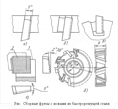 Сборные, оснащены режущей частью в виде ножей из быстрорежущей стали, многогранными и круглыми пластинками из твердых сплавов или из сверхтвердых или керамических материалов.