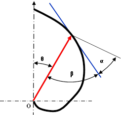 Кривой с постоянным углом давления (угол давления кривой β – это угол между касательной к кривой и радиусом-вектором, проведенным в точку касания, β = 900 - α) является логарифмическая спираль, однако она не технологична.