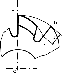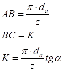 Величина затылования К – падение архимедовой спирали в пределах углового шага, измеренное в радиальном направлении.