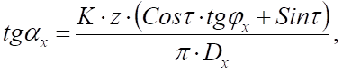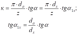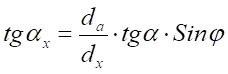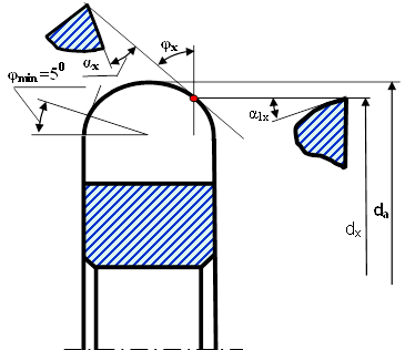 где φx – угол профиля, а Dx - диаметр фрезы в рассматриваемой точке