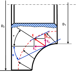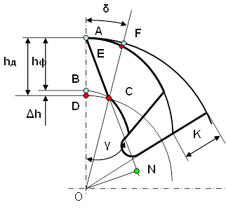 Фактическая величина радиального затылования Крф равна сумме радиальных составляющих Кр и Кор, где Кор – радиальная составляющая осевого затылования