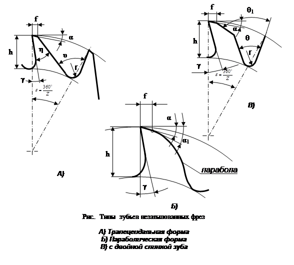 Существует три основные формы незатылованных зубьев: трапецеидальная форма, параболическая форма и с двойной спинкой зуба