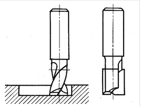 При обработке пазов и уступов (Рис.) направление винтовых канавок противоположно направлению вращения, что обеспечивает лучший отвод стружки и положительный передний угол на торцовых зубьях.