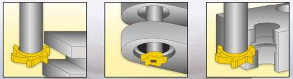 Применяются для обработки уступов, могут использоваться для получения больших углублений методом интерполяции.