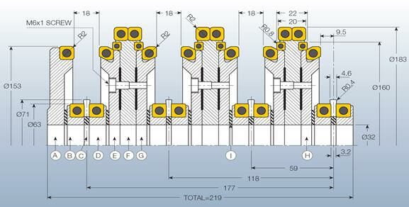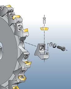 • Зубцы на режущей кромке пластины совпадают с контуром корпуса фрезы, что повышает надежность инструмента