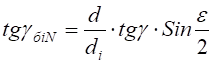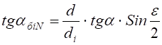 Боковые передние углы в главной секущей плоскости в точках режущей кромки, лежащих на диаметре di: