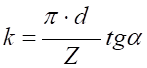 • Задний угол получают путем затылования режущей части по Архимедовой спирали (рис. 24 в). Величину затылования определяют по формуле: