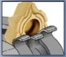Режущая кромка образована двумя или более пластинками, перекрывающими друг друга, поэтому она формирует практически плоское дно отверстия.
