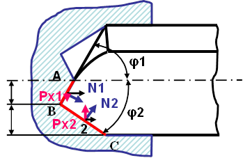 Величину а принимают меньше b или угол φ1 > φ2 , тогда Рх1 < Рх2, при этом калибрующая кромка, снабженная фаской, испытывает наименьшее давление, что предупреждает увод сверла.