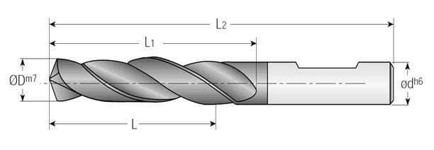 • Длина рабочей части l0 сверла зависит от глубины сверления и запаса на переточку l0 ≥ l + 3D (l – глубина отверстия). С увеличением длины рабочей части количество переточек сверла возрастает, но снижается жесткость сверла и стойкость между переточками. Для обработки прочных материалов желательно выбирать короткие сверла.