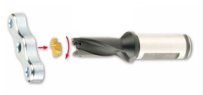 Сокращает время на смену инструмента. Для установки головки используется специальный ключ. Для удаления использованной головки достаточно пол-оборота ключа. Само сверло остается неподвижным в станке.