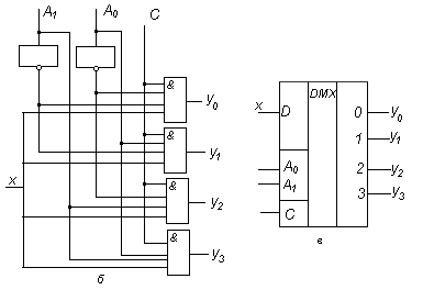 Аналогично можно построить демультиплексоры (рис. 5.16 б, в) в соответствии с табл. 5.10.