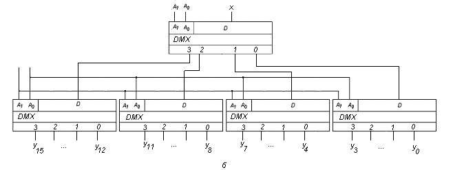 Аналогично строится демультиплексорное дерево (рис. 5.17,6).
