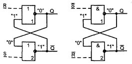 Рис.3.1. Схемы элементов памяти(фиксаторов) со входами управления: а) на элементах ИЛИ-НЕ; ) на элементах И-НЕ
