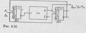 Если между входным и выходным триггерами включен делитель частоты на любое натуральное число п, то такая схема обеспечивает деление частоты на М = 2п+1.