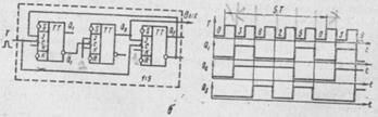 На рис. 6.35. показан общий принцип построения счетчиков с нечетным М. Данная схема была предварительно получена стандартными методами синтеза автоматов.