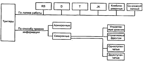 Классификация триггеров проводится по признакам логического функционирования и способу записи информации (рис. 3.2).