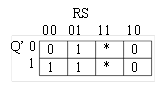 Если записать таблицу истинности RS-триггера в виде карты Карно и доопределить запрещенные значения сигналов на выходах логическими 1-ми, получим характеристическое уравнение 3.1.