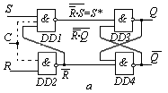 Одновременная подача сигналов установки S и сброса R не допускается (эта комбинация сигналов называется запрещенной). Q’ и