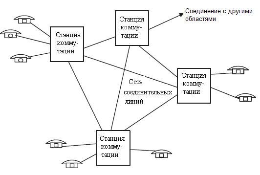 Если станции коммутации находятся в разных городах, то они соединяются линиями связи, каждая из которых содержит несколько десятков каналов связи.