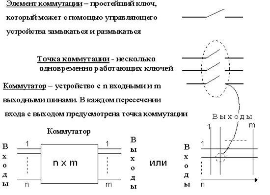 Рис. 8.4. Элементы коммутации, точки коммутации и коммутаторы