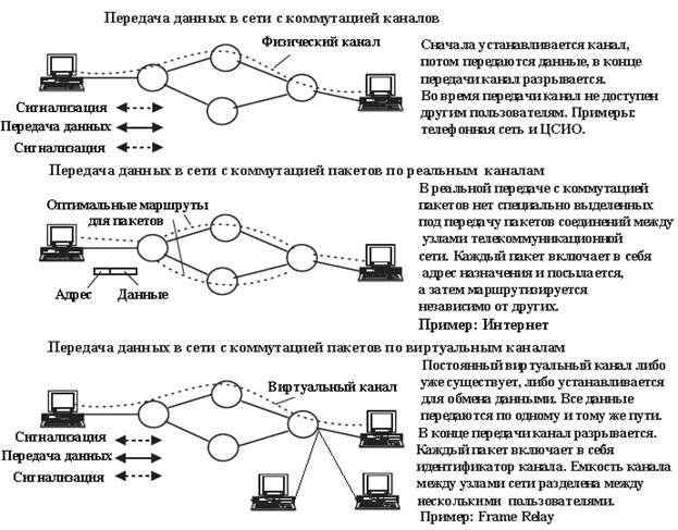 Известны три способа коммутации: коммутация каналов, коммутация сообщений, коммутация пакетов.