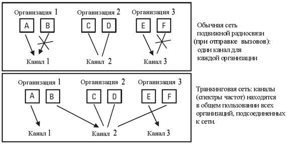 Рис. 12.2.Принцип распределения ресурса сети и транкинговые сети
