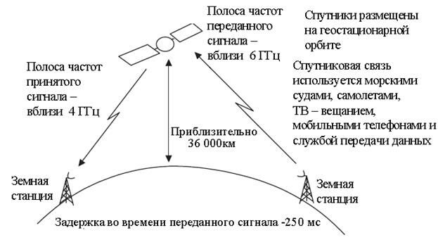 Разновидностью радиорелейных линий являются спутниковые линии. Радиосигналы с земной передающей станции излучаются в направлении искусственного спутника Земли, где принимаются, усиливаются и вновь передаются в направлении земной принимающей станции, которая может находиться даже на другой половине земного шара. Таким образом, радиоаппаратура искусственного спутника Земли исполняет роль промежуточной станции радиорелейной линии, находящейся на большой высоте.