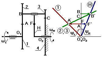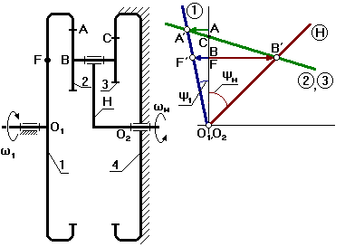 Выберем на водиле Н точку F так, чтобы O2F=O1A (валы O1 и O2 соосны). Точка С может быть выше или ниже точки А.