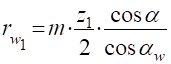 w – это угол между линией зацепления и общей касательной к начальным окружностям, проведённой через полюс зацепления.