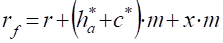от граничной прямой ножек на то же расстояние. С учётом отмеченных размеров общая высота зуба исходного контура получается