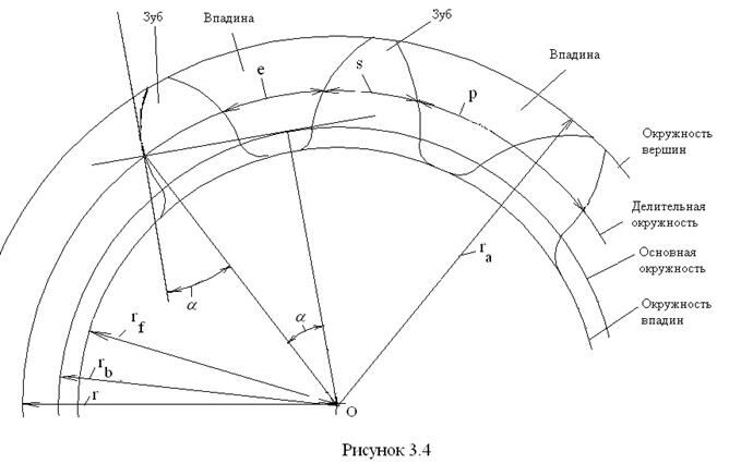 Отметим прежде всего, что здесь рассматриваются те элементы зацепления, которые имеются именно в зацеплении колёс и исчезают, если колёса вывести из зацепления (рис. 3.5). К этим элементам относятся следующие.