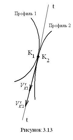перпендикулярен нормали, в противном случае появится составляющая относительной скорости, направленная вдоль неё. Если эта составляющая будет направлена в сторону Пр2, то произойдёт внедрение профиля Пр1 в профиль Пр2, если она будет направлена в обратную сторону, то произойдёт отрыв профилей друг от друга. В обоих случаях высшая пара будет разрушена. Так что данное положение доказано.