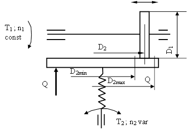 Теоретически для лобового вариатора можно получить D2®0 Д®¥. Практически диапазон регулирования ограничивают значениями Д£3. Это объясняется тем, что при малых D2 значительно возрастает скольжение и износ, а КПД понижается.В отношении КПД и износостойкости лобовые вариаторы уступают другие конструкциям. Однако простота и возможность реверсирования обеспечивают им широкое применение в маломощных передачах приборов и других подобных устройствах.