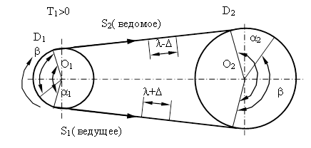 Следовательно, элемент ремня ведущей ветви растянут на величину (l+D), ведомой - (l-D).