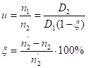 V2= V1( 1- x), где x - коэффициент, учитывающий скольжение.