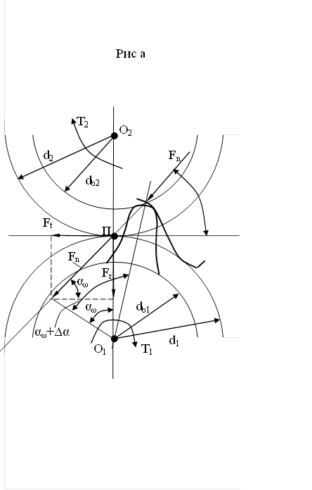 Силу Fn переносим в полюс и раскладываем на Ft – окружная сила и на Fr – радиальная сила.
