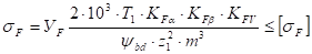 во всех этих формулах Т1 в Н·м – крутящий момент(на валу шестерни), если Т2 в Н·м – крутящий момент (на валу колеса);bw = dw1·m в мм; [σF] – Мпа.